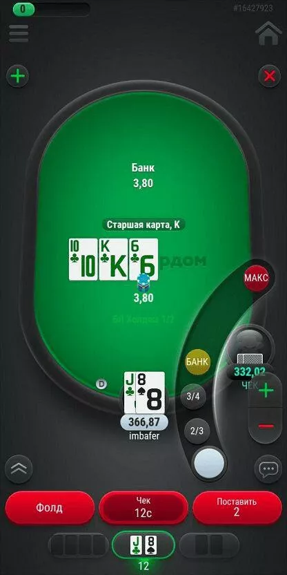 - Удобный слайдер ставок. Нужный размер рейза можно выбрать за несколько кликов.