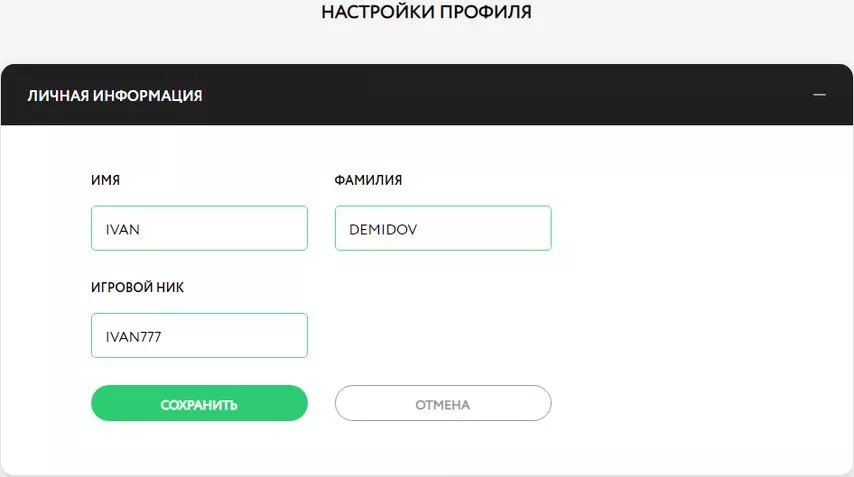 7. В открывшемся окне вводим дополнительную информацию о себе: реальную фамилию и имя. Придумываем ник, который будет виден другим покеристам.