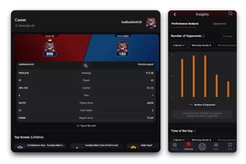 - PokerIntel — покерная база данных с анализом собранной статистики, оценкой уровня игры и ранговой системой. Бонусом идут полезные утилиты вроде подсчета EV или префлоп-гайдов.