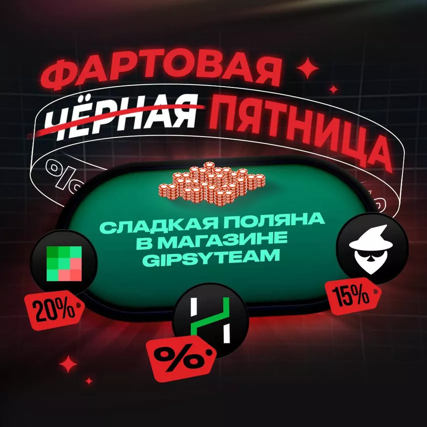 До 30 ноября включительно проходит акция «Фартовая Пятница»: можно существенно сэкономить при покупке покерного софта, обучающих курсов и других позиций в магазине GipsyTeam.