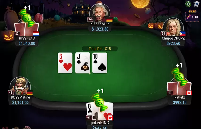 1. Собирать конфеты за появление валета пик на столе (получают все участники раздачи) или среди карманных карт. Участвуют столы холдема, омахи, шортдека, AoF и Rush & Cash.