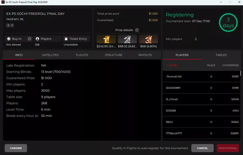 До 21 декабря PokerPlanets проводит бесплатные турниры с гарантией 1,000: принять участие могут игроки, которые перенесли свои аккаунты с PokerStars Sochi.