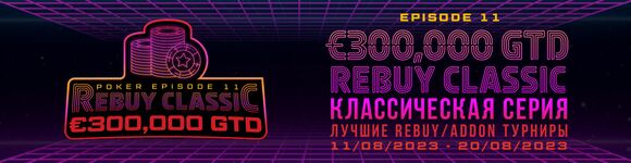 | сб, 19 августа | 12:00 | E11|Rebuy Classic|€1,500 GTD | €7.5 |