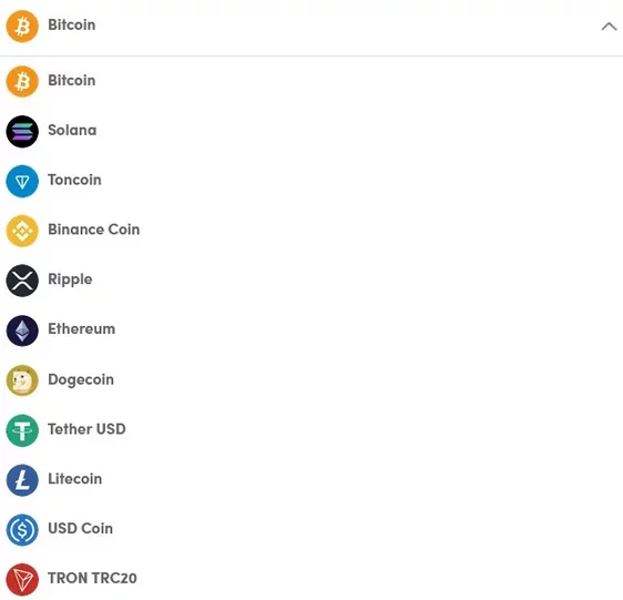Внести деньги на баланс дают только криптовалютами. Обычные методы оплаты платформа не поддерживает. Рум планирует добавить сервис покупки цифровой валюты за фиат. Пополнить счет SpinBet можно 11 криптовалютами: