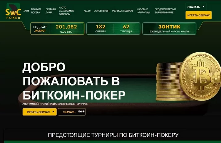 SwCPoker — пионер онлайн-покера с игрой на биткоины. Внутренняя валюта — microBTC. 1 μBTC — это одна миллионная часть биткоина.