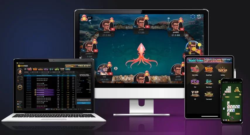 Платформа сочетает классические виды покера и оригинальные форматы. В число первых входят безлимитный техасский холдем, пот-лимитная омаха. К экзотике отнесем Squid Game. В ее основе лежит NL Holdem, но приправленный дополнительными наградами. Перед стартом каждый игрок вносит деньги в призовой фонд Squid Game. Во время сессии соперники получают выплаты в зависимости от результатов их игры. Формат стимулирует покеристов активнее бороться за банки.
