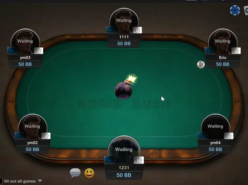 Bomb Rush — результат скрещивания быстрого покера и Bomb Pots. Сразу после фолда игрока пересаживают за новый стол и стартует следующая рука. Иногда рум «раздувает» пот за счет анте игроков, чем стимулирует более активную борьбу. В такой руке розыгрыш начинается на флопе.