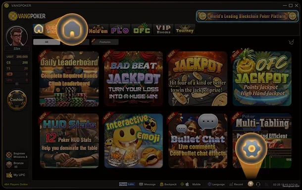 Программное обеспечение VangPoker для компьютеров напоминает упрощенную версию клиента PokerOK. Среди отличий тот факт, что аватар, баланс и касса вынесены в левую часть экрана. В румах сети Good Game они размещены справа.